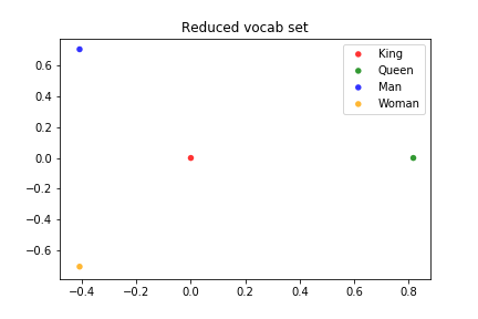 Excellent questions. Let's work through a simple example together, using a reduced vocabulary of only four words: king, queen, man, woman.